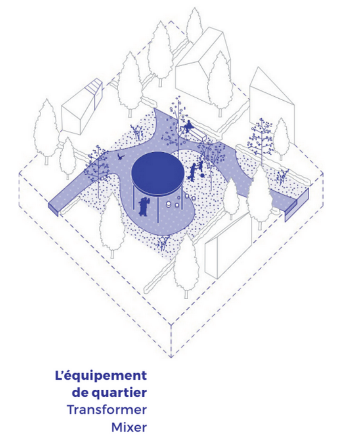 Au gré des transformations de ces prototypes, une sorte d’évidence, d’abord intuitive, s’est progressivement transformée en une posture de projet argumentée. Les pistes d’explorations ne se résument pas dans la transformation d’une seule dimension, elles ne trouvent de sens que dans leur imbrication à de multiples échelles. Autrement dit : les transformations à mettre en œuvre ne s’appliquent pas au seul habitat individuel privé : elles demandent de repenser les alliances et les niveaux d’arrangements spatiaux et sociaux qui pourraient exister dans la périphérie.